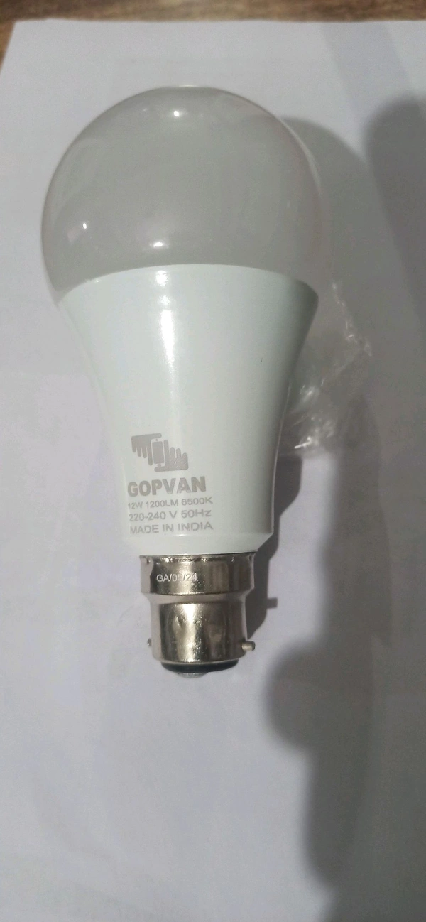 Gopvan 12W High Glow LED bulb| 180-degree wide beam angle| Voltage surge protection up to 4 kV| 6500K, Cool White| B22d base| Made in India|